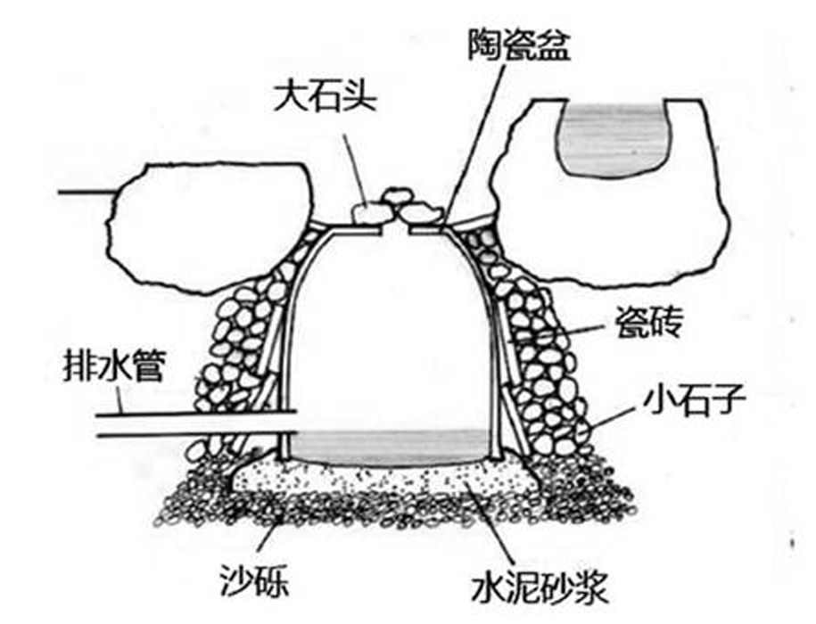 水門:也叫做海,是最低的部分,主要是用來吸水,所以周圍還鋪上砂石。